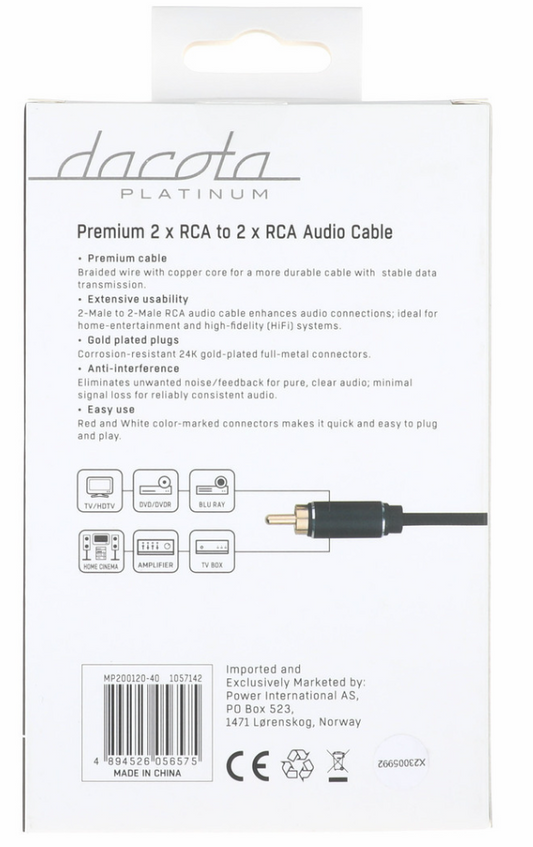 Dacota 2 x RCA uros - 2 x RCA uros - kaapeli, musta (5,0m)